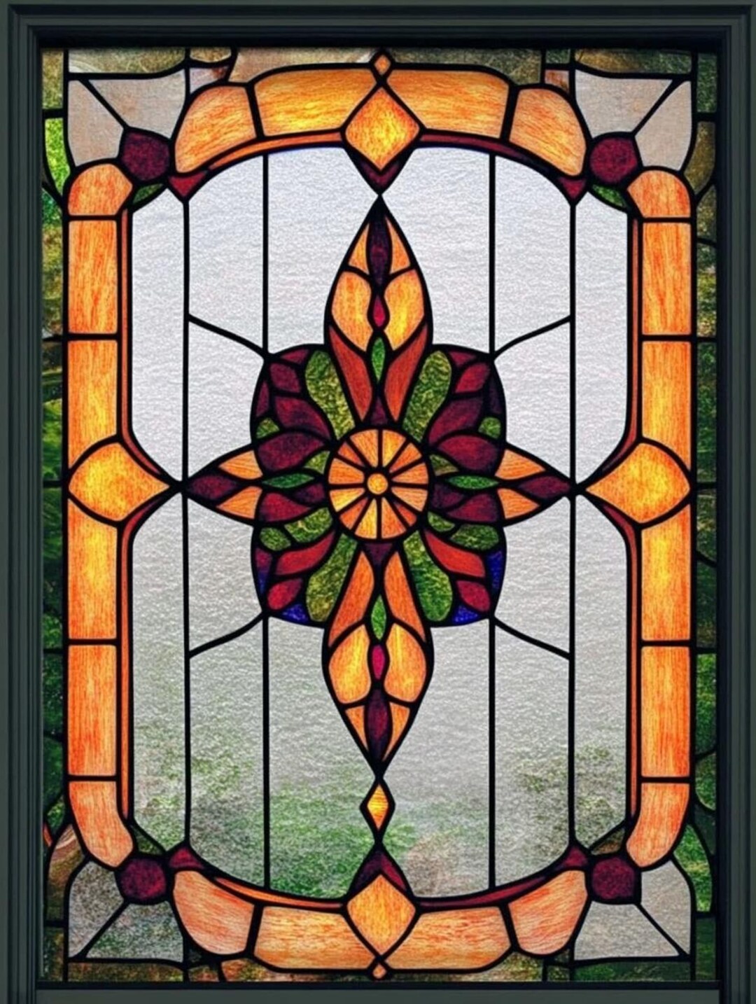 So Beautiful! The “Beveled Maywood” Compass Leaded Stained Glass Window ...