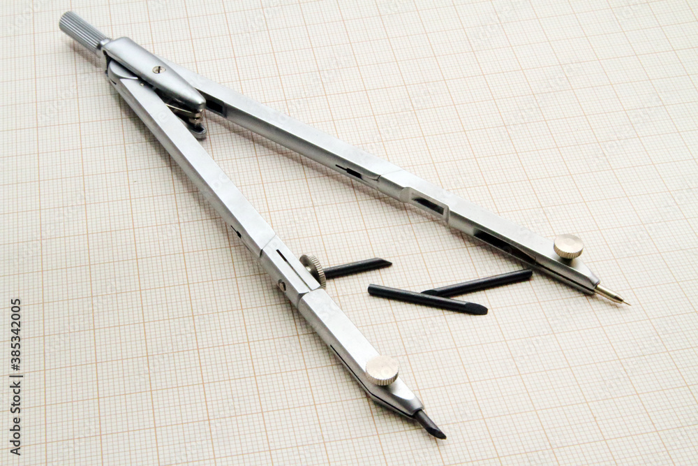 compasso vintage e carta millimetrata, vintage compass and graph paper ...