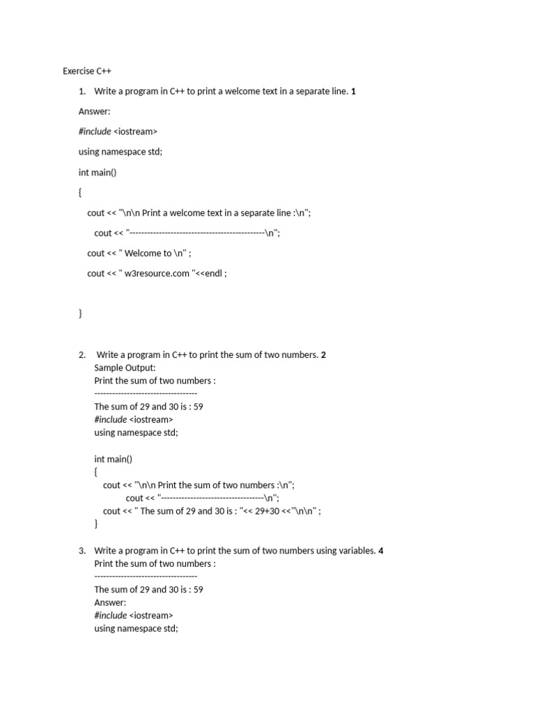 C++ Practice Exercises with solutions PDF - wivato.com - Medium