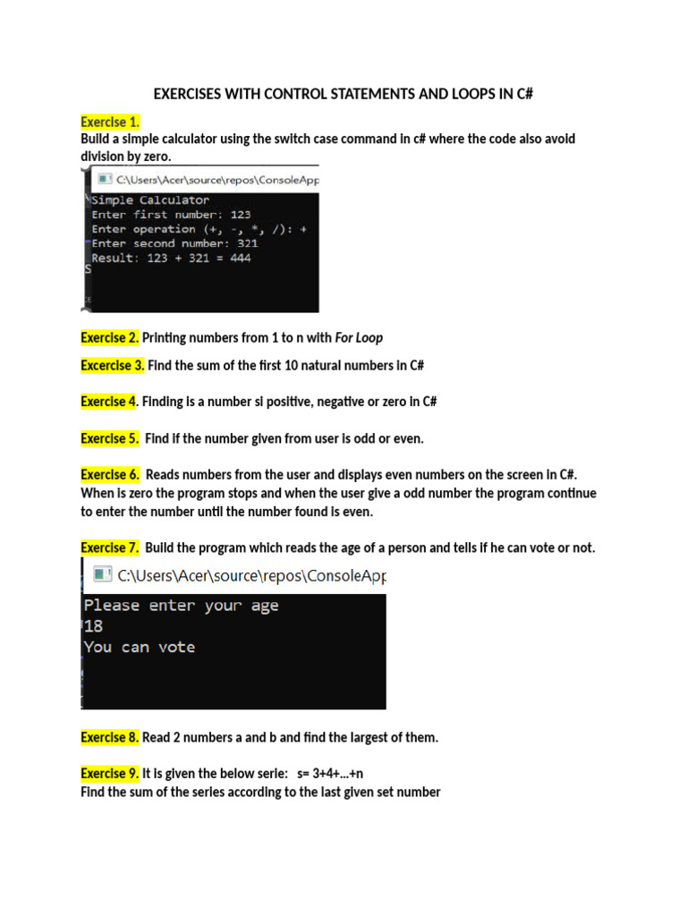 C# Control Statements and Loops Exercises | PDF
