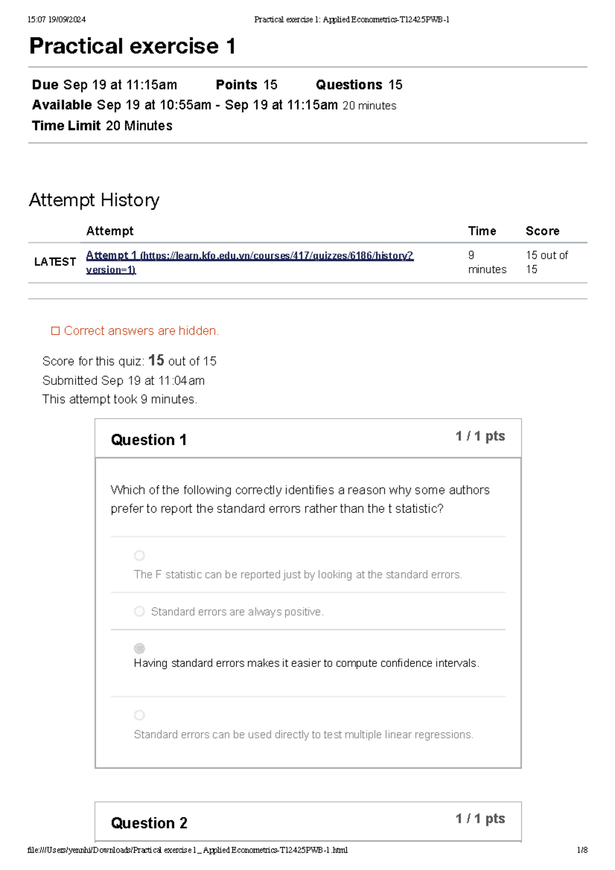Practical exercise 1 Applied Econometrics-T12425 PWB-1 - Practical ...
