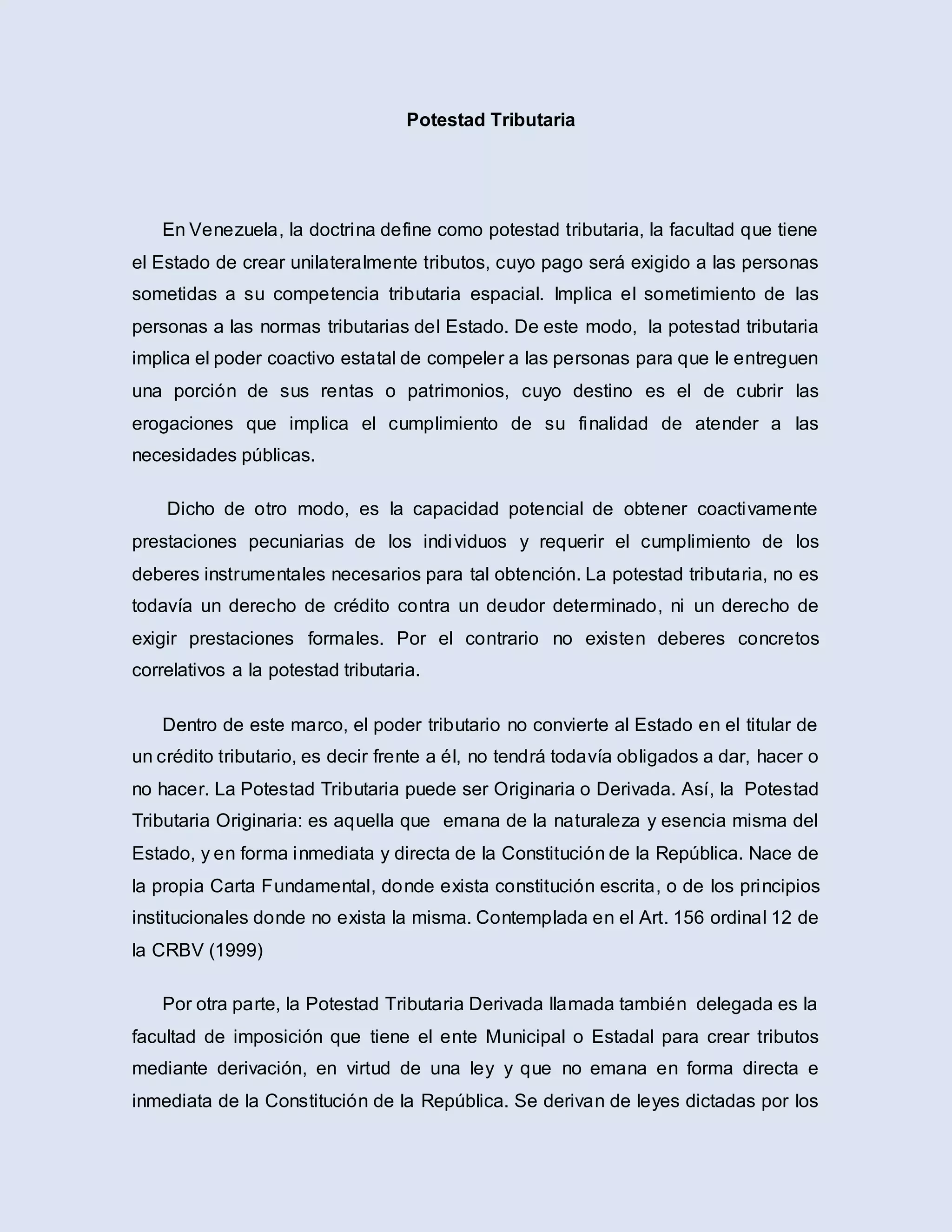 La Potestad Tributaria | DOCX | Personal Taxes | Personal Finance