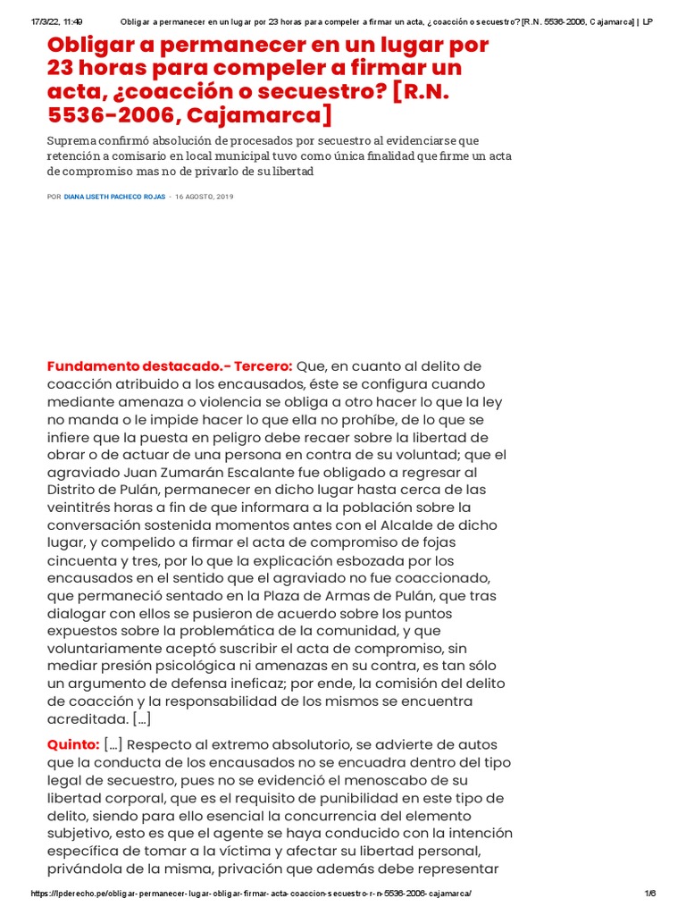 Obligar A Permanecer en Un Lugar Por 23 Horas para Compeler A Firmar Un ...