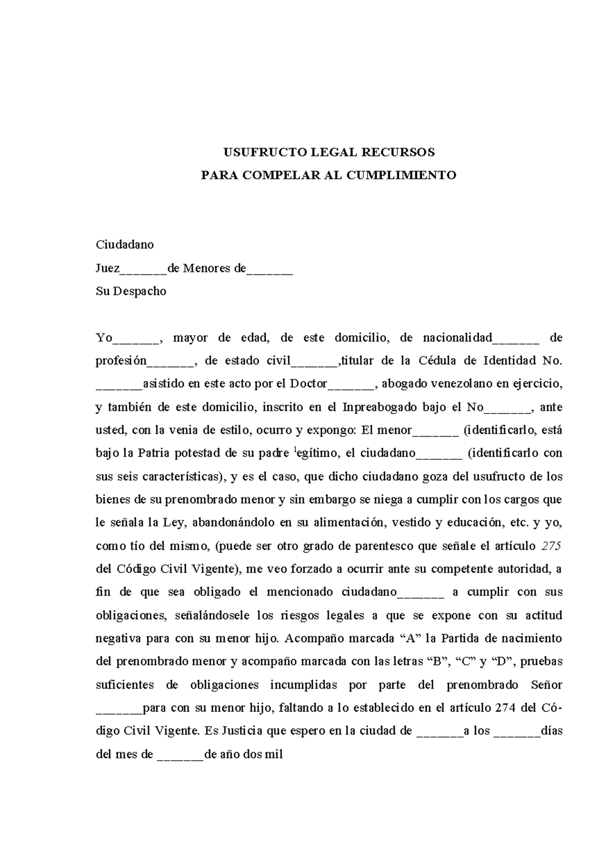 USUFRUCTO LEGAL: Recursos para Compeler Cumplimiento - Studocu