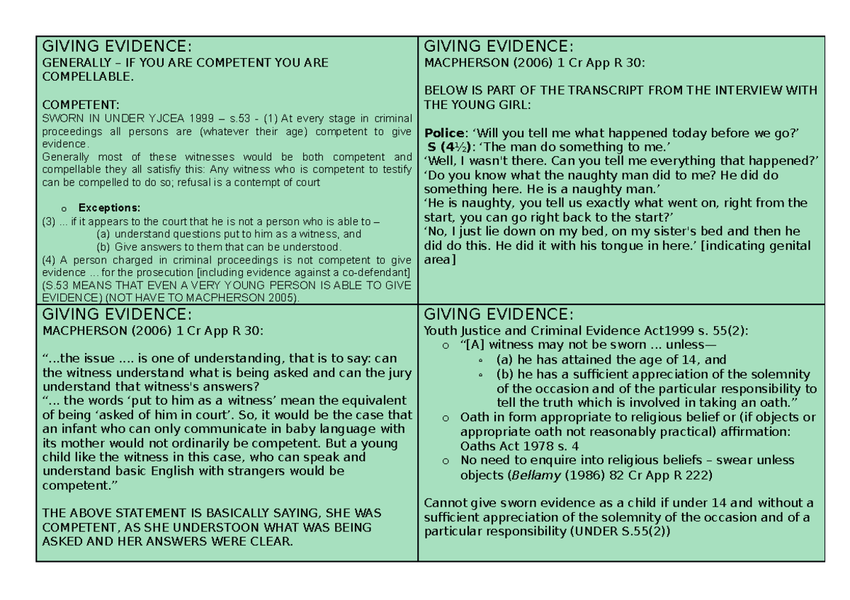 Unit 6 Notes - Competence and Compellability - A competent witness is ...
