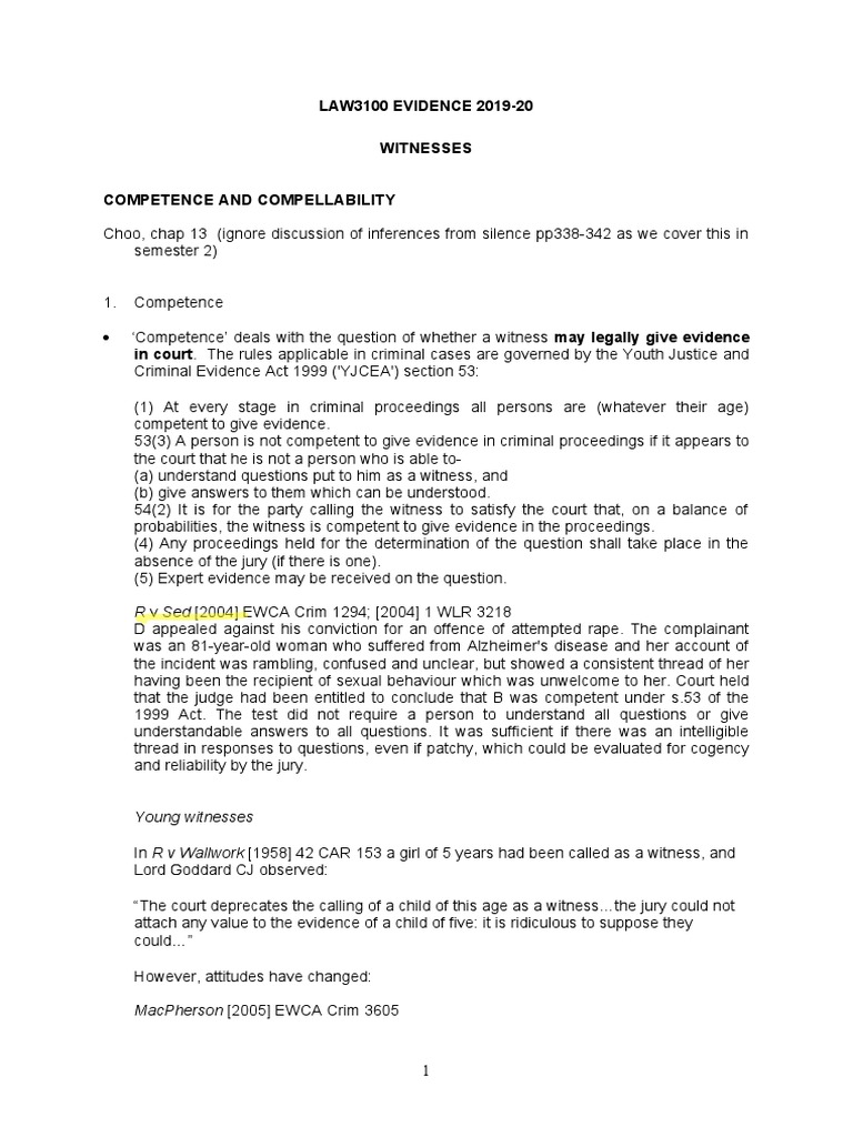 COMPETENCE & COMPELLABILITY IN WITNESS TESTIMONY (LAW 101) - Studocu