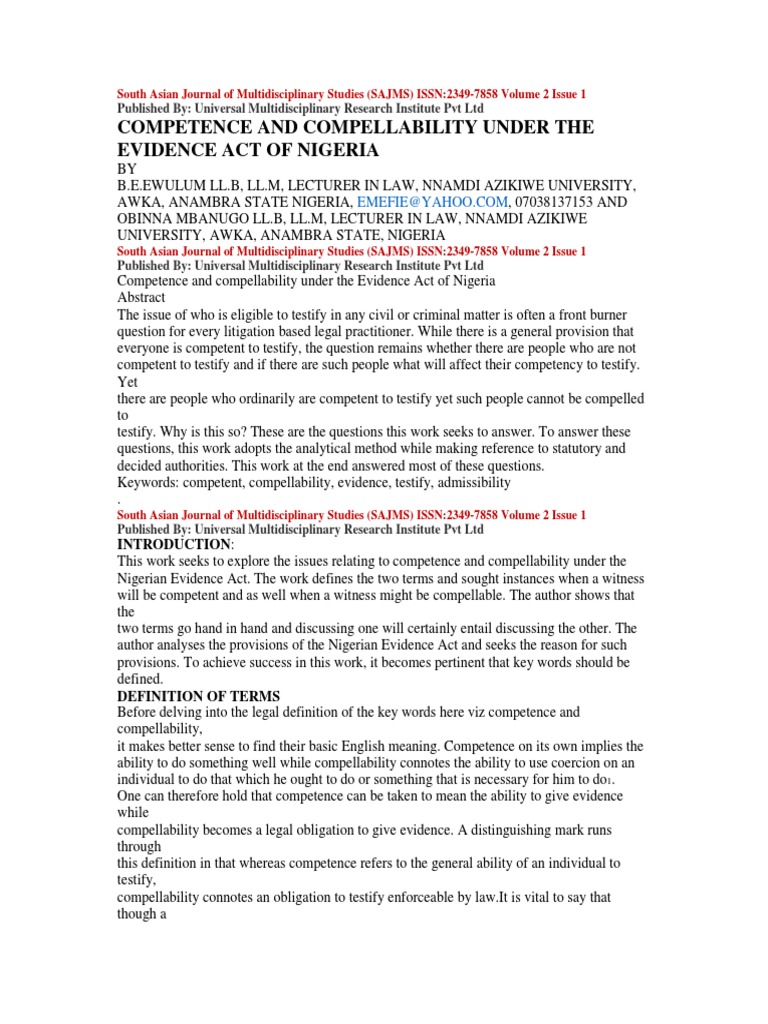 Competence and Compellability in Nigeria | PDF | Marriage | Witness