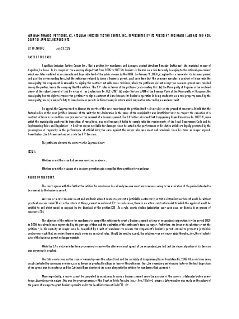 Municipal Mayor Not Compellable to Issue Business Permit | PDF ...