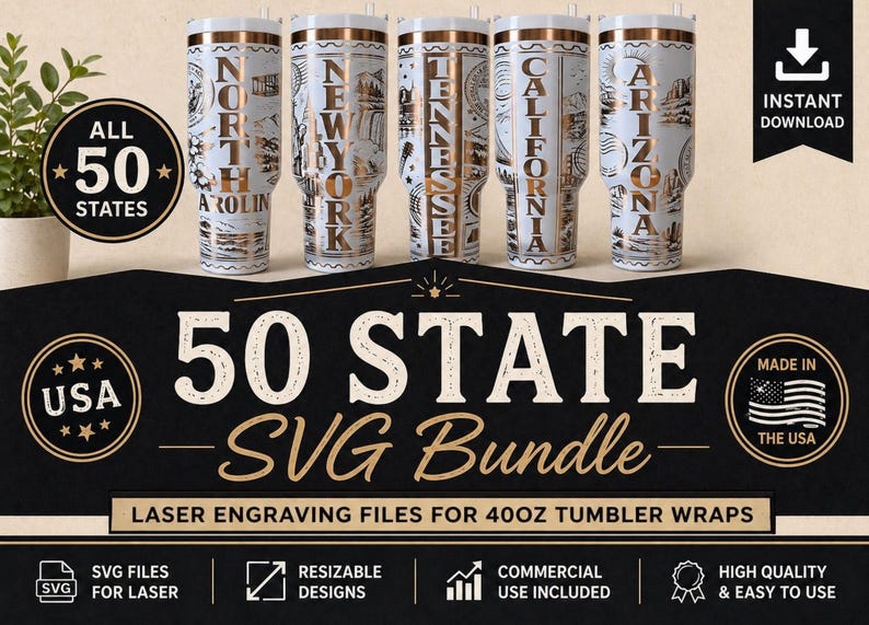 50 State SVG Bundle Laser Engraving Files 40oz Tumbler Wrap USA Designs ...