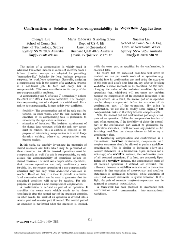 (PDF) Confirmation: a solution for non-compensatability in workflow ...