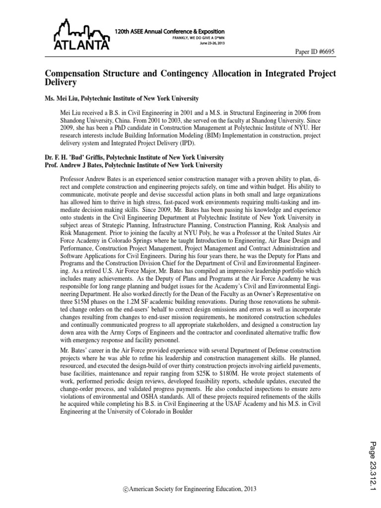 Compensation Structure and Contingency Allocation in Integrated Project ...