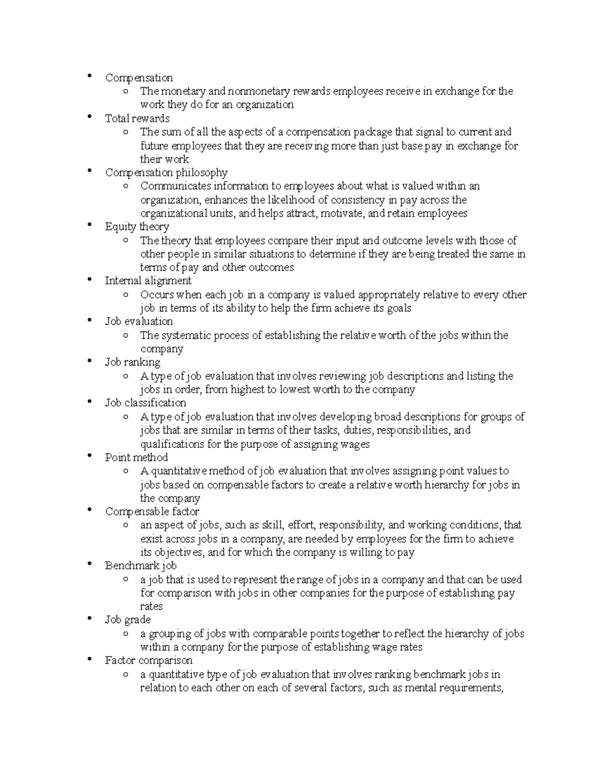 Chapter 10 - Compensation o The monetary and nonmonetary rewards ...