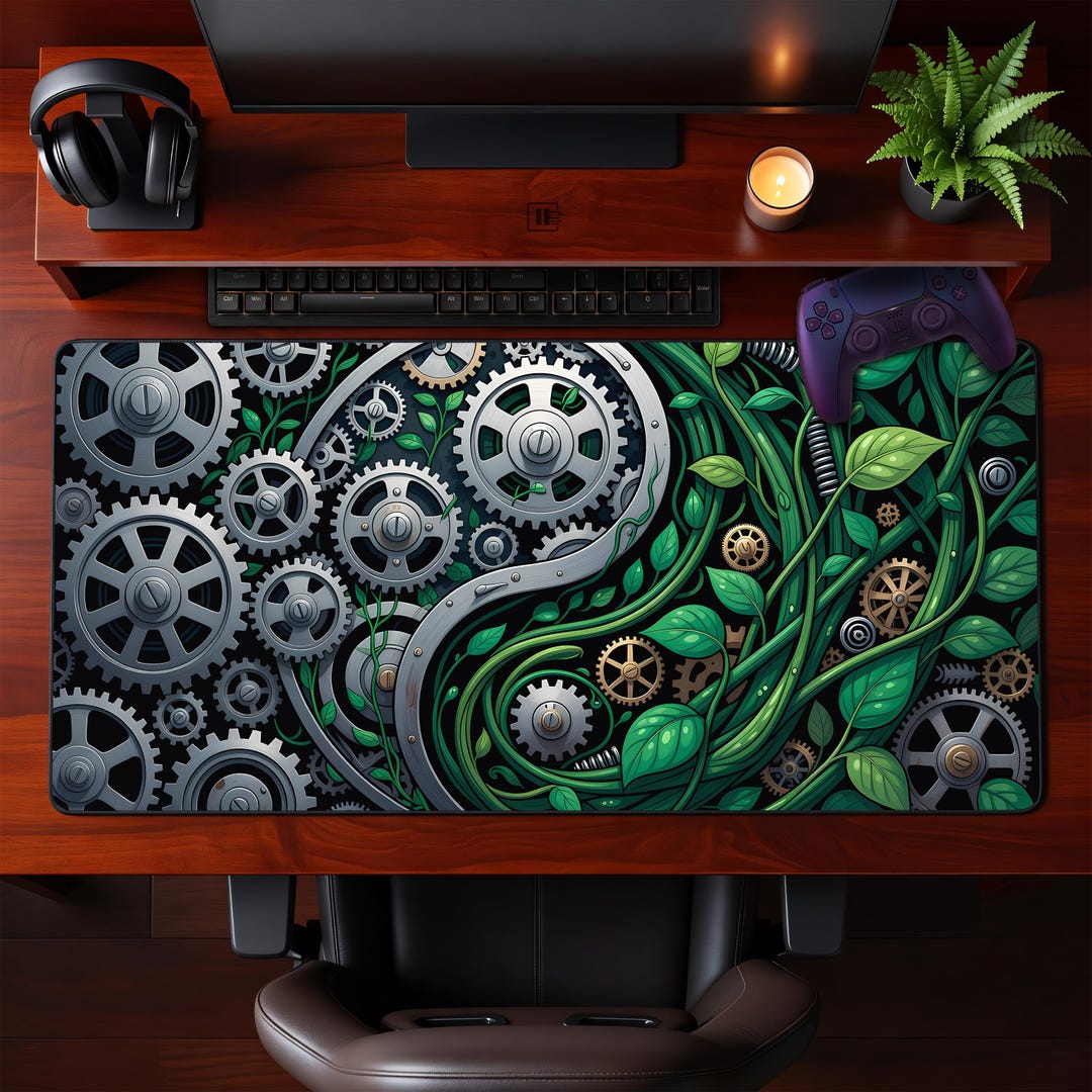 Biomechanical Gears Vines Desk Mat Industrial Nature Mouse Pad Extended ...