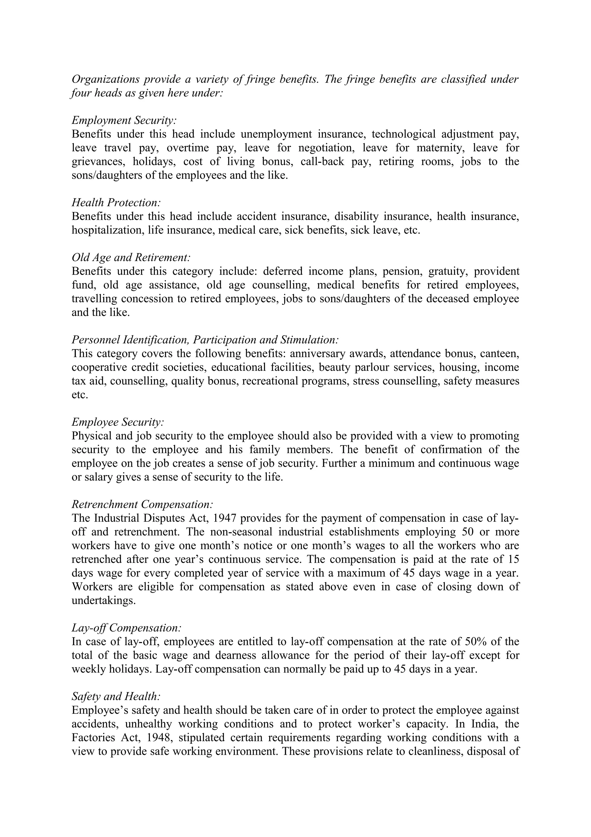 Components of Compensation (Non Monetary Elements Use of These Methods ...