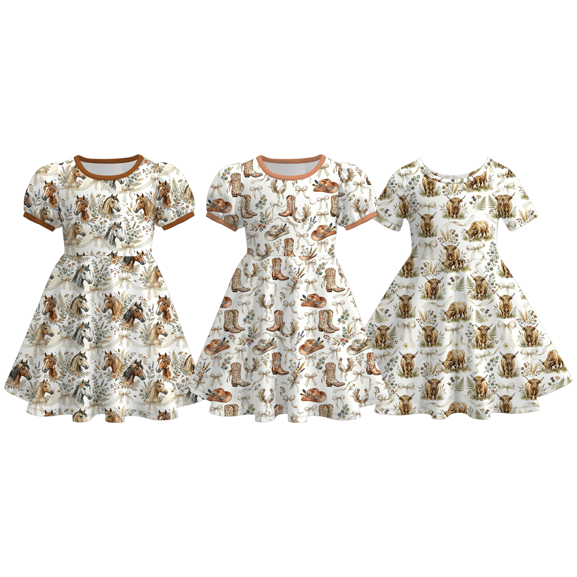 (Pre Order+Prepack Zone)Girls Spring&Summer Western Bowboy Print Dress