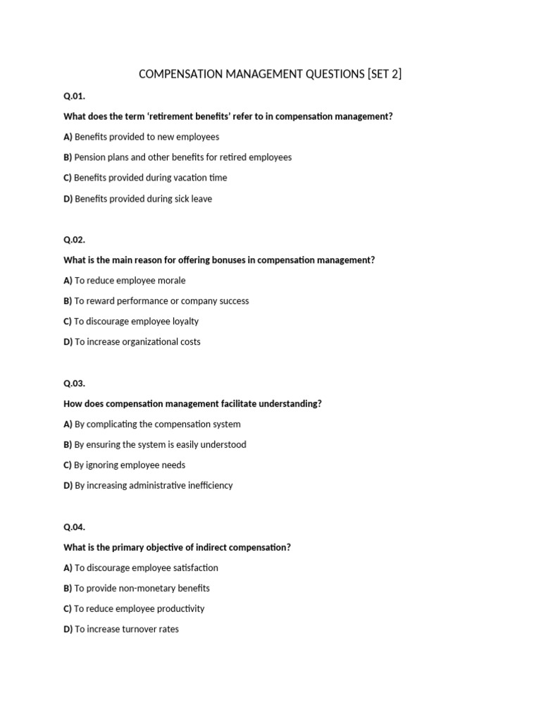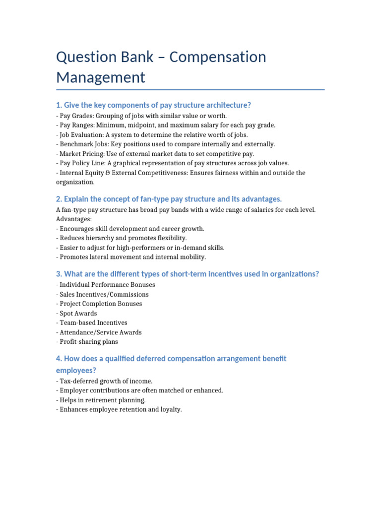 Compensation Management Question Bank | PDF | Incentive | Employee ...
