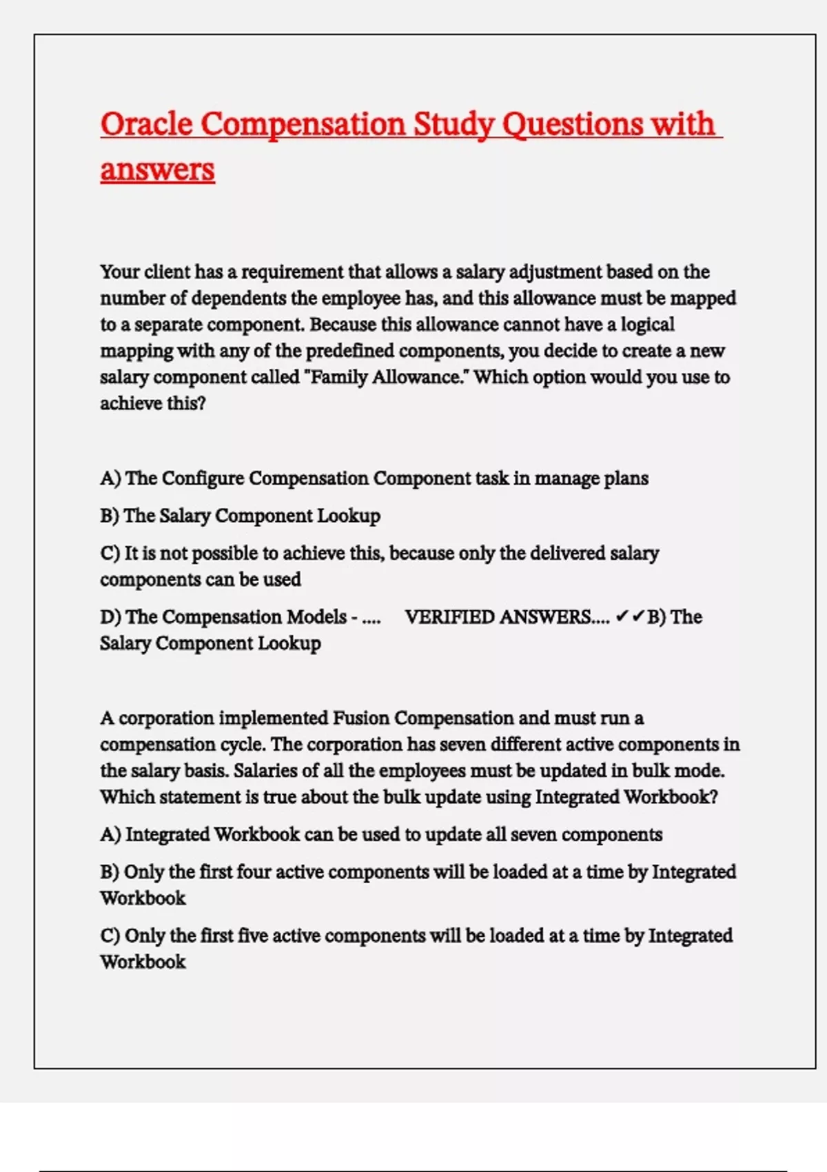 Oracle Compensation Study Questions with answers - Oracle Compensation ...