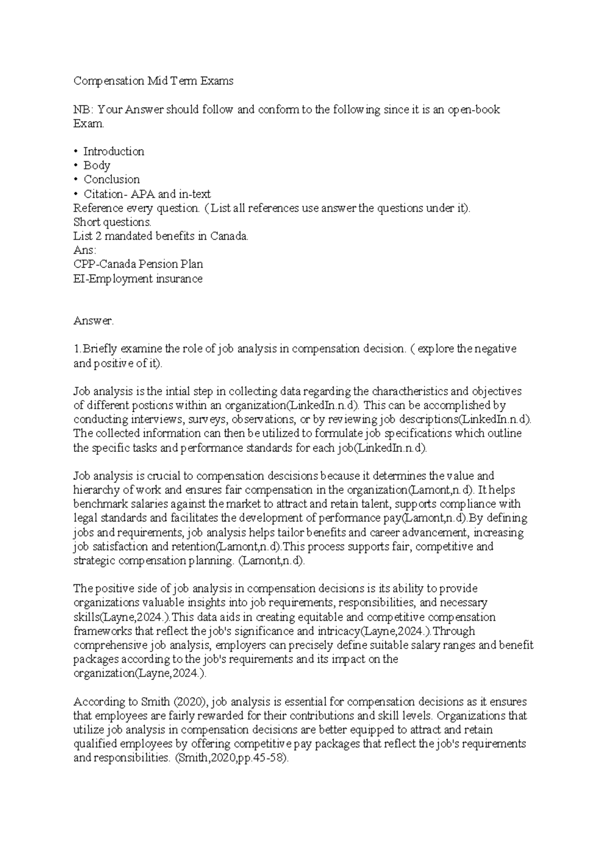 Solved QUESTION TWOCritically analyse the compensation | Chegg.com