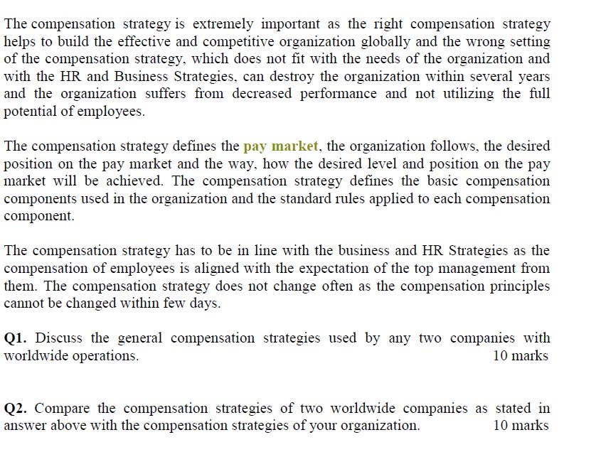 Solved QUESTION 25In determining the compensation strategy, | Chegg.com