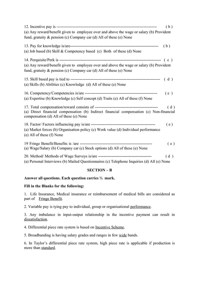 Compensation Management Question Bank | PDF | Incentive | Employee ...