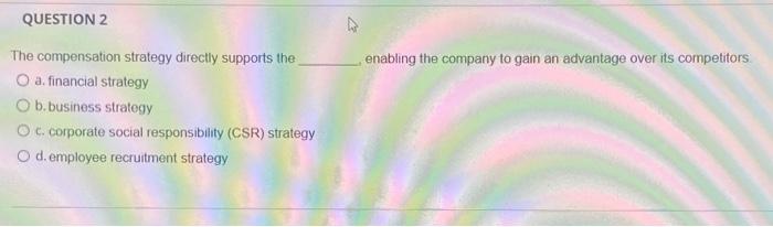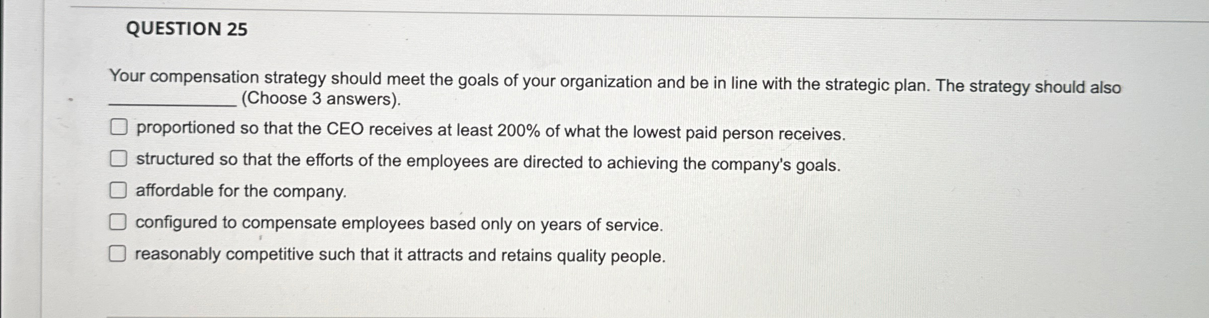 Solved QUESTION 25Your compensation strategy should meet the | Chegg.com
