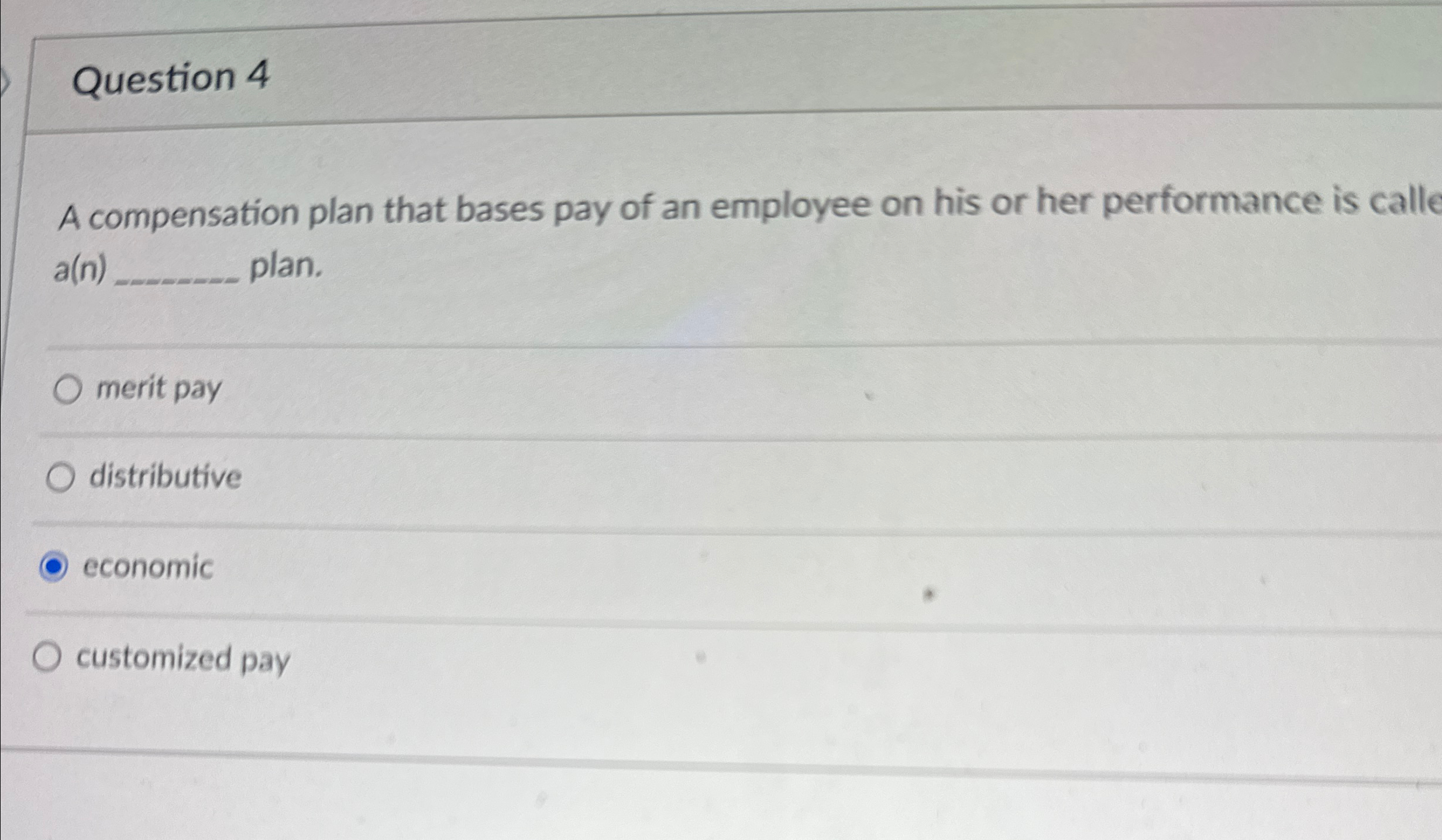 Solved Question 4A compensation plan that bases pay of an | Chegg.com