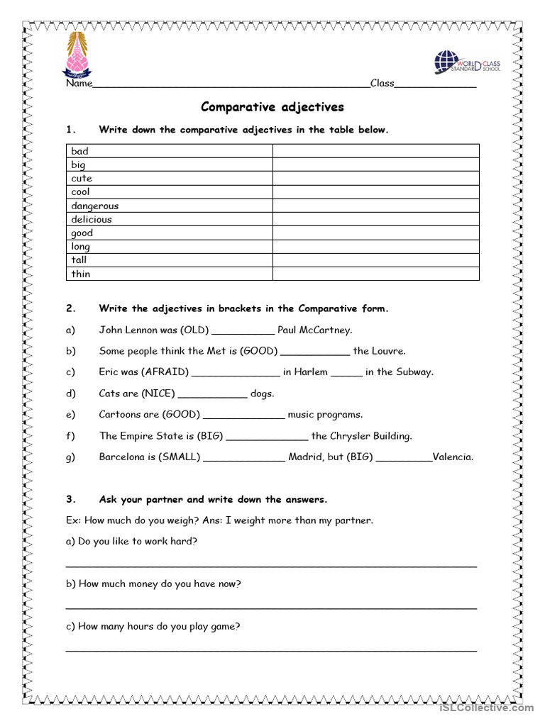 Short adjectives comparative worksheet | Comparative adjectives ...