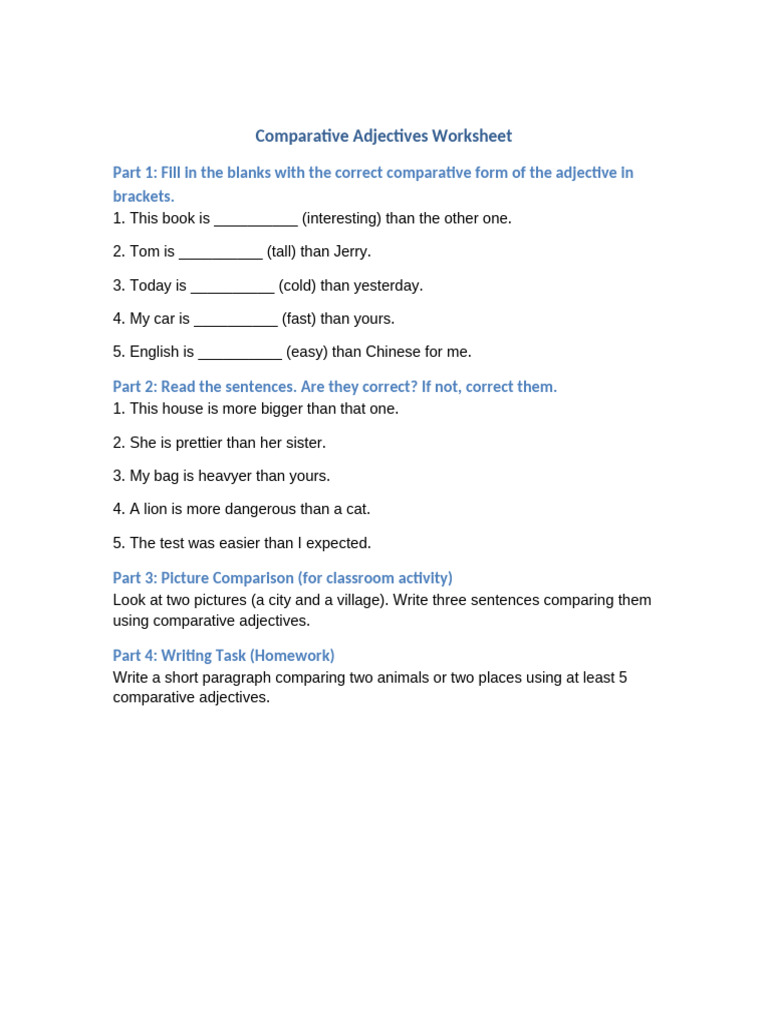 Worksheet Comparative Adjective | PDF | Adjective | Languages