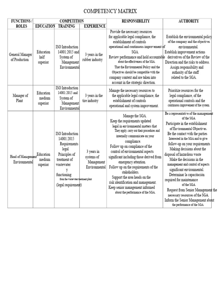 ENVIRONMENTAL COMPETENCE MATRIX.docx | PDF | Sewage Treatment | Waste