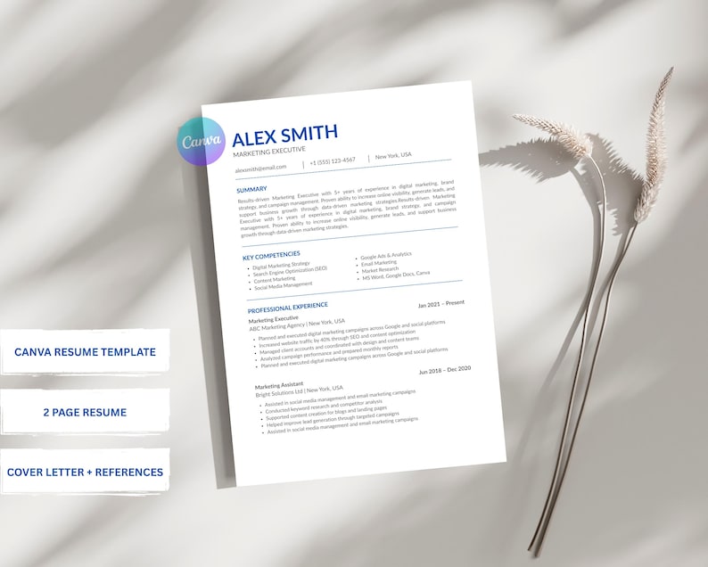 Canva Resume Template | ATS Friendly Professional CV (digital Download ...