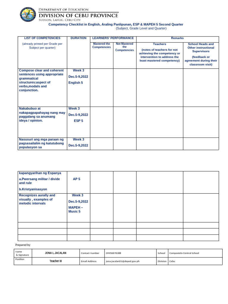 Competency-Checklist Template | PDF