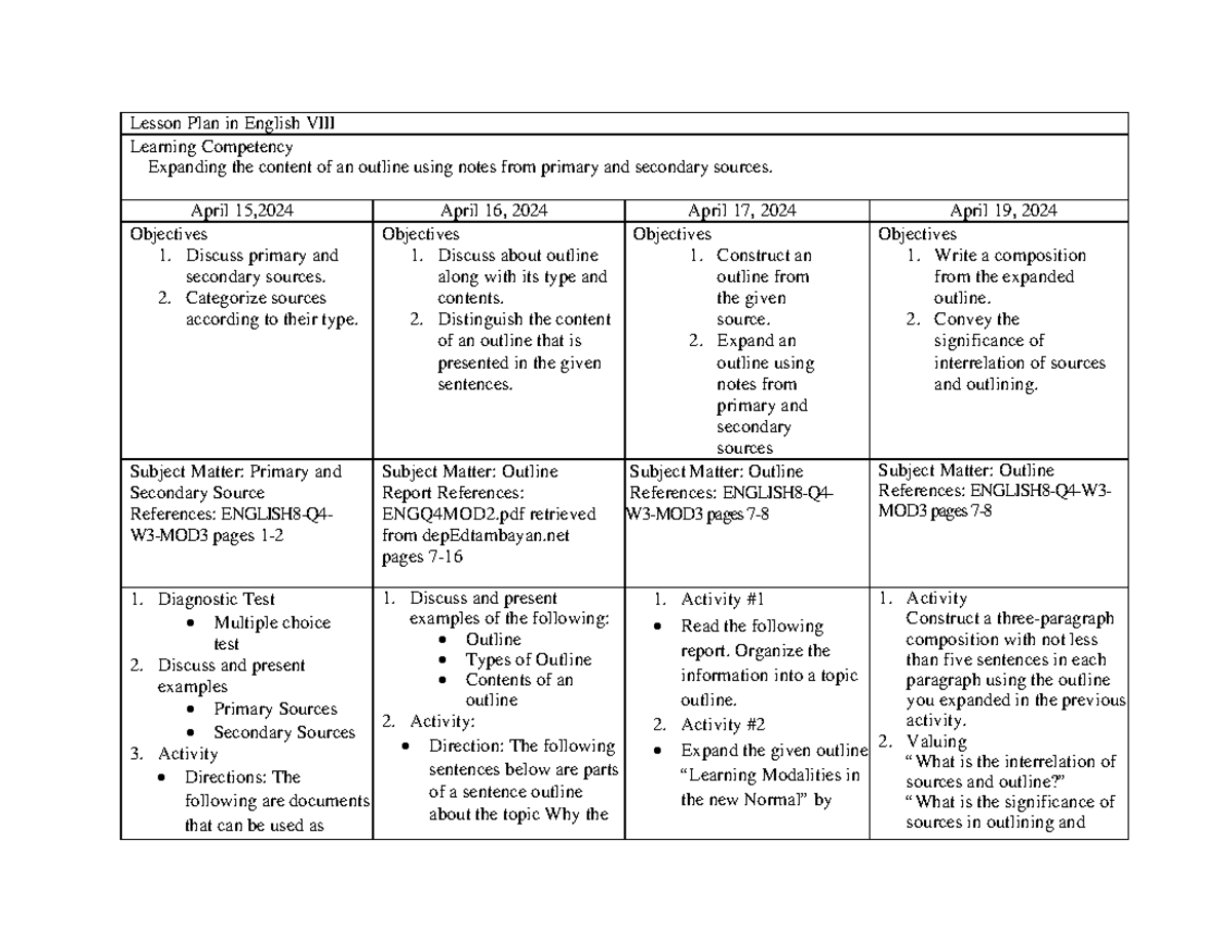 Lpgrade 8 - Lesson Plan in English VIII Learning Competency Expanding ...