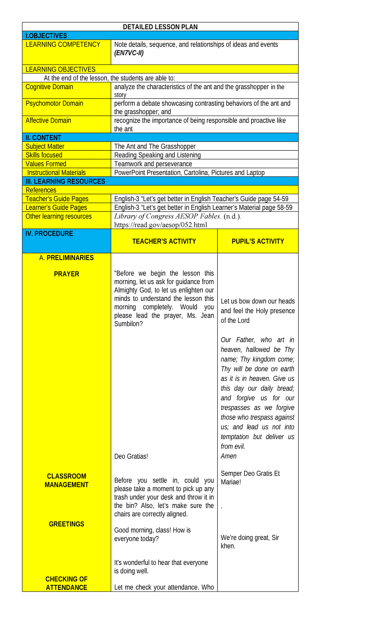I. Learning Competency: A Detailed Lesson Plan in English John Reylord ...
