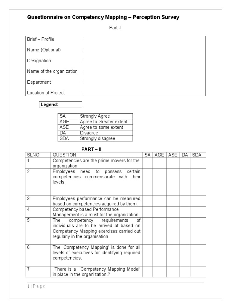Competency Mapping Survey Questionnaire | PDF | Cognition
