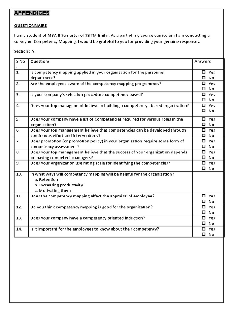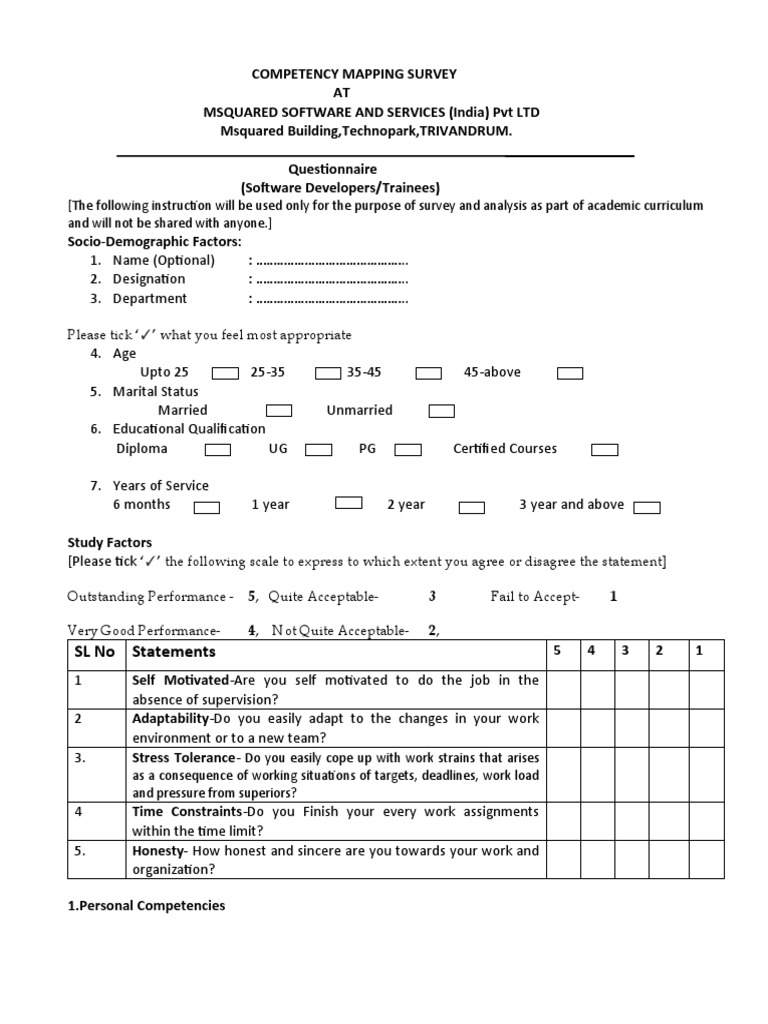 Questionnaire Competency Mapping Project | PDF | Competence (Human ...