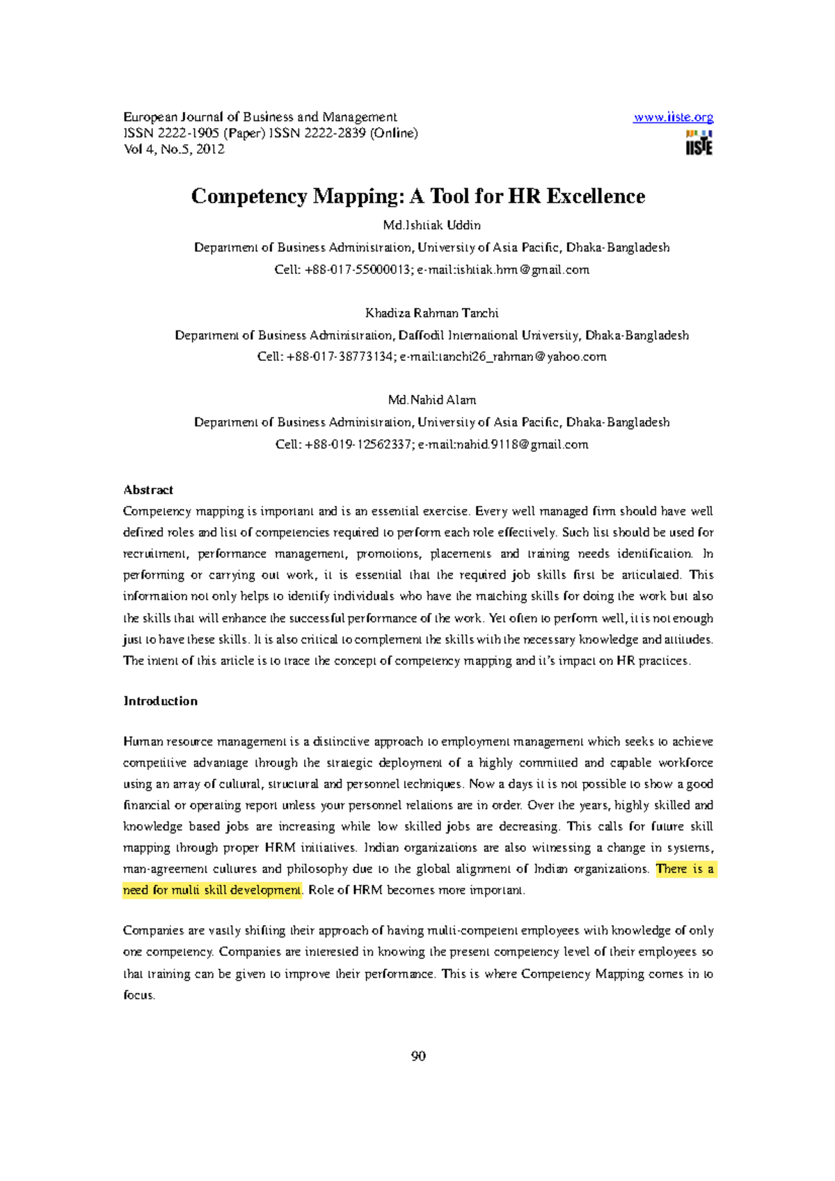 Research Paper Competency Mapping - ISSN 2222-1905 (Paper) ISSN 2222 ...