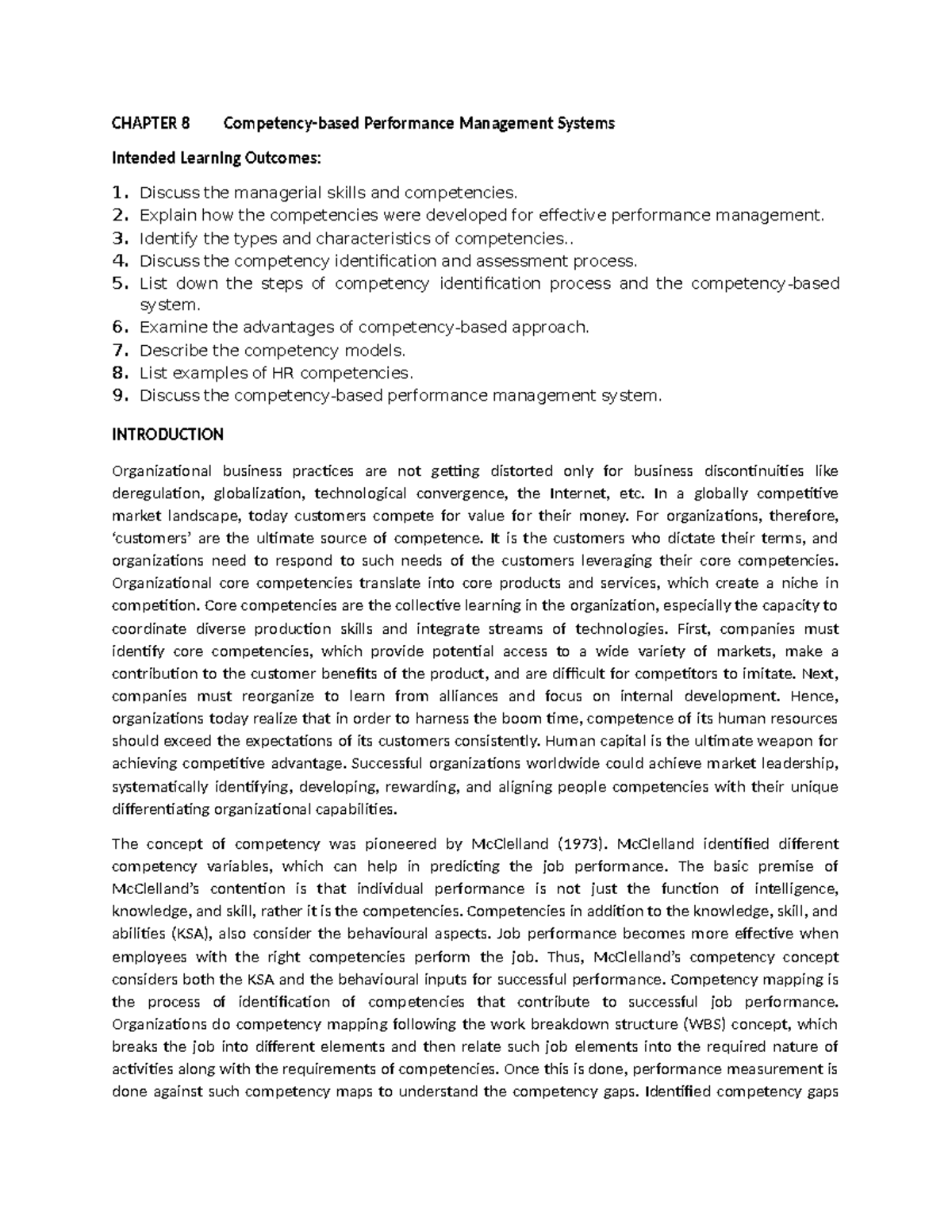 CHAPTER 8: Competency-Based Performance Management Systems - Studocu