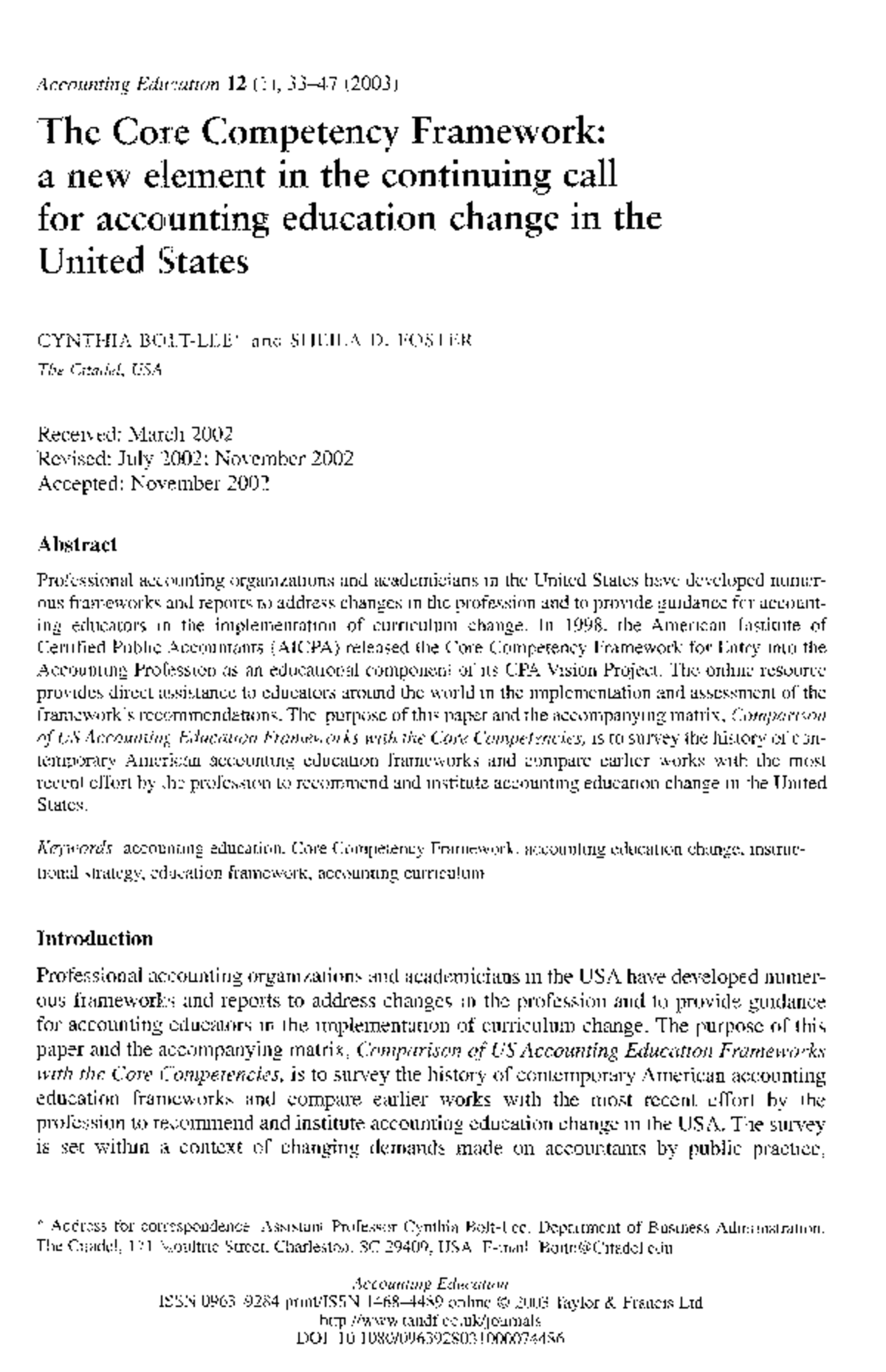 Core Competency Framework in US Accounting Education: A Review - Studocu