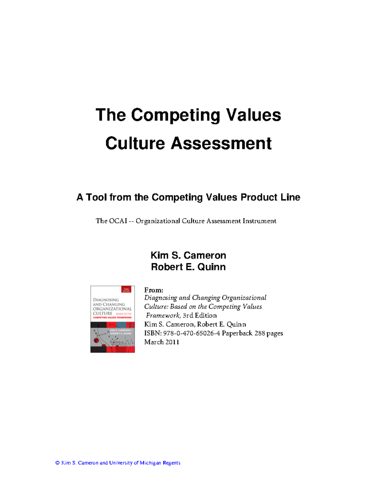 OCAI Assessment fillable - The Competing Values Culture Assessment A ...