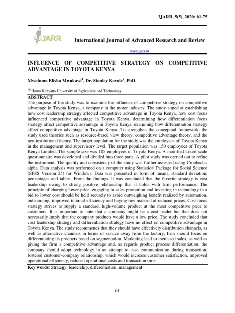 Influence of Competitive Strategy On Competitive Advantage in Toyota ...