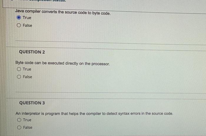 Solved 16 Java compiler will (1 Point) Convert a bytecode | Chegg.com
