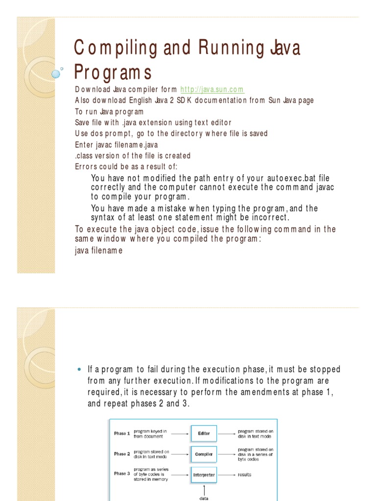 Explain the process of compiling and running java program with sample ...