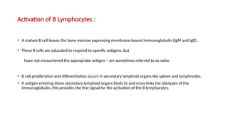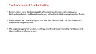B cell activation. Antigen presentation. Plasma cells and Antibody ...