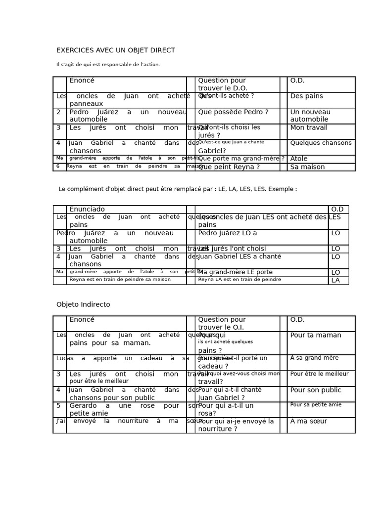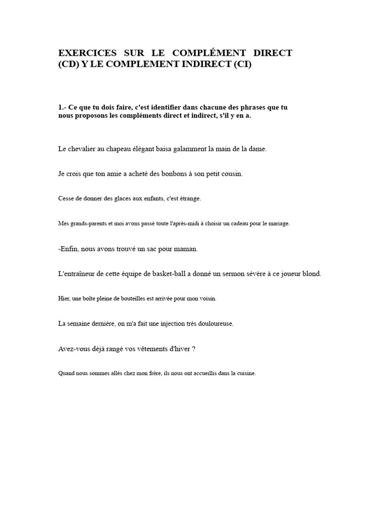 Exercices Avec Complément Direct | PDF | Complément d'objet | Linguistique