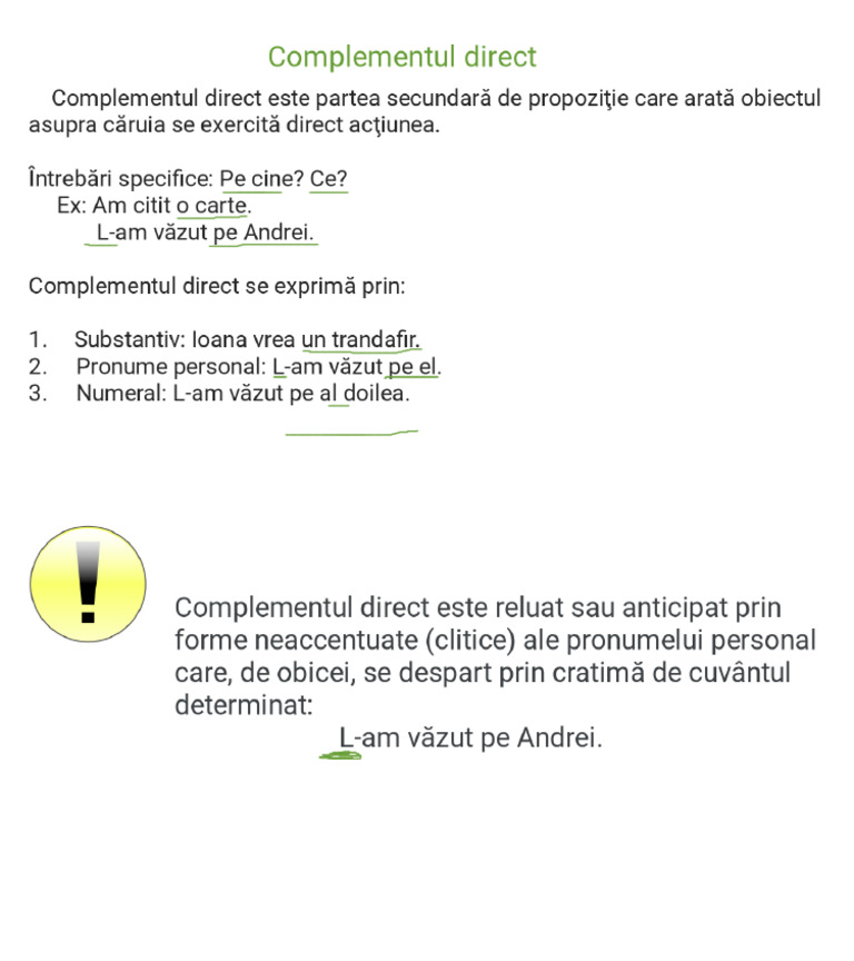 Complementul direct. Еxerciții. Limba și literatura română clasa a 8-a