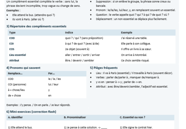 Grammaire, compléments essentiels
