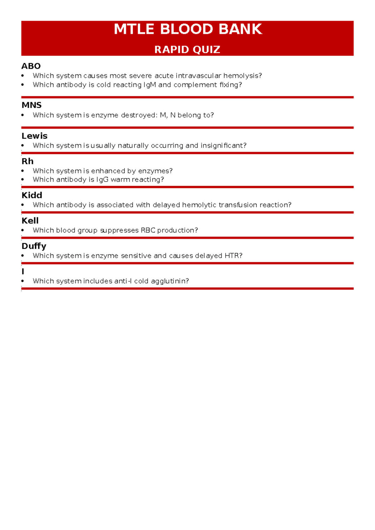 MTLE Blood BANK Rapid Questions - MTLE BLOOD BANK RAPID QUIZ ABO Which ...