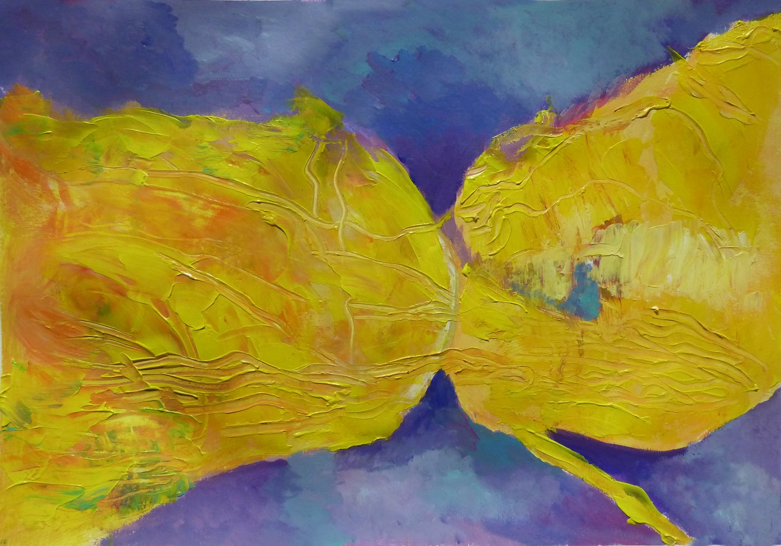 Hoog water 2, studie complementaire kleuren, acryl op doek 20x50, 2013 ...