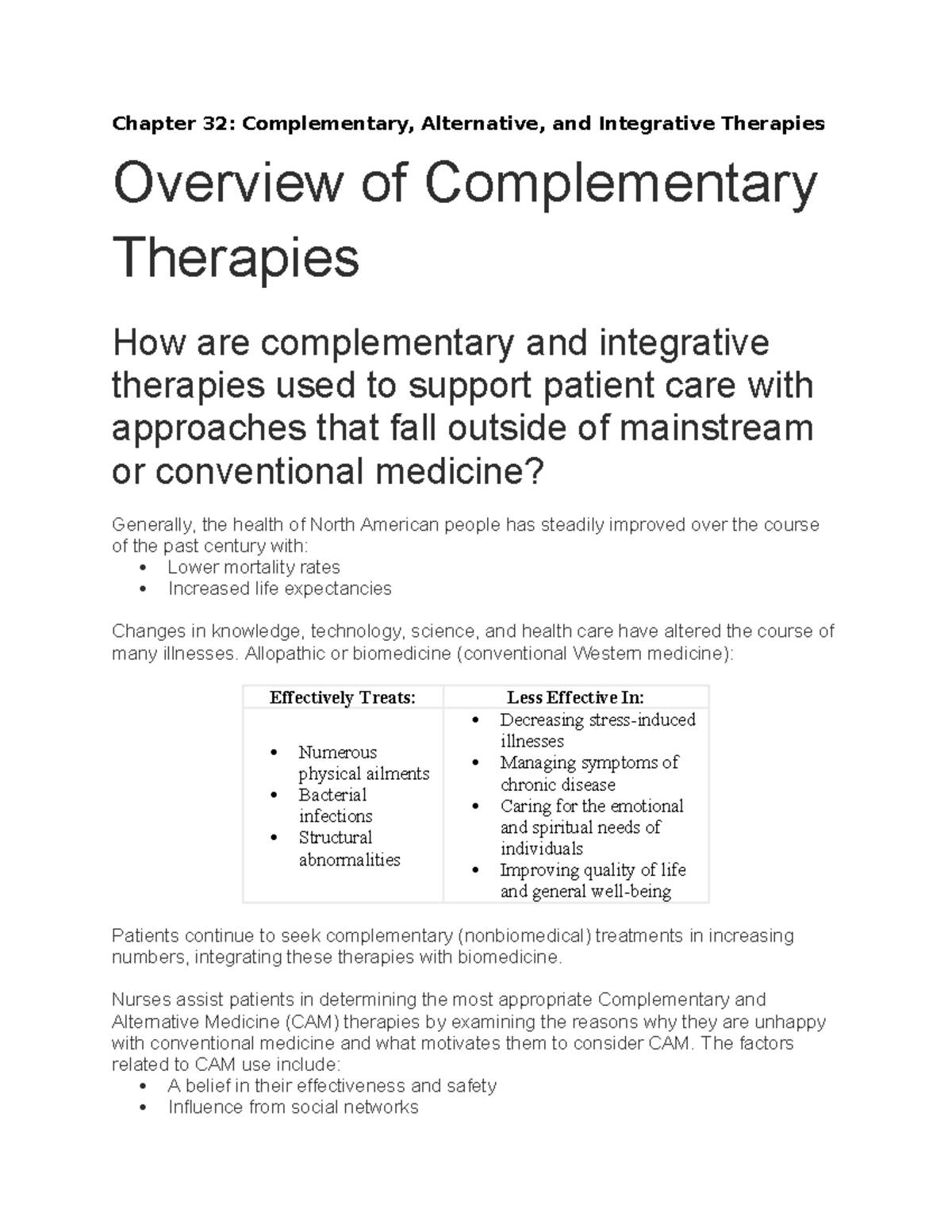 Complementary Treatments: Definitions and Examples (Module 1) - Studocu