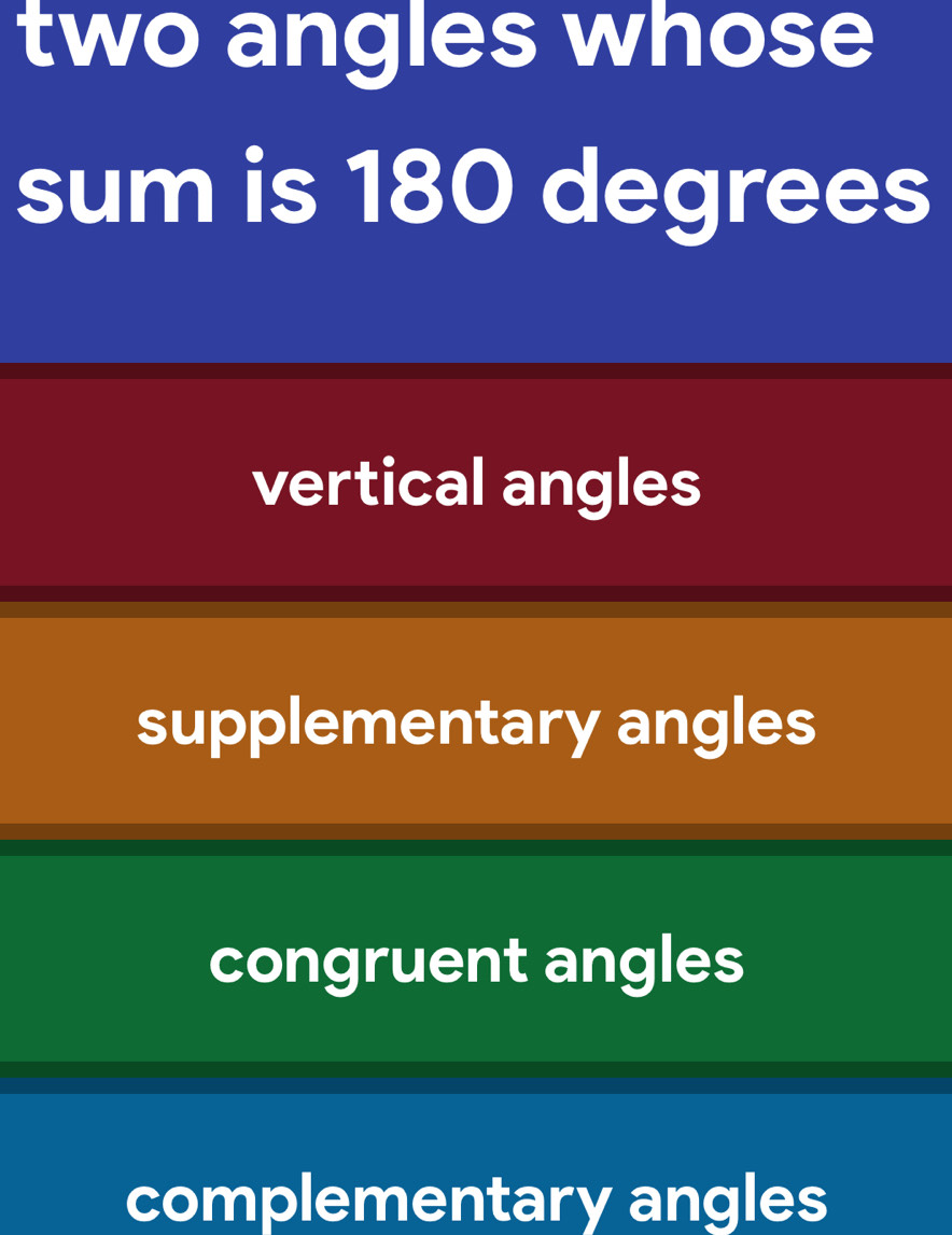 Solved: two angles whose sum is 180 degrees vertical angles ...